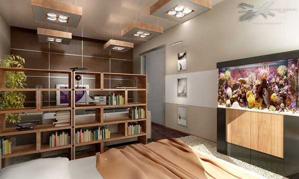 Идеи зонирования спальни и гостиной стеллажами