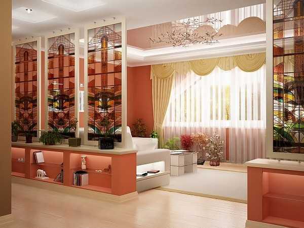 Зонирование гостиной и спальни перегородками