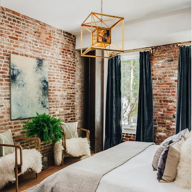 Северный НестерХотя вы можете ассоциировать кирпич с современными спальнями в стиле лофт, эта комната от Northern Nester доказывает, что она так же прекрасно работает в деревенской схеме декора, вдохновленной фермерским домом.