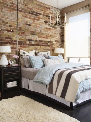 Прекрасный способ сделать стильной спальню с кирпичными стенами (от Horchow).