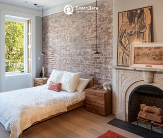 Извлеченный из-под слоев отделочных материалов кирпич в интерьере спальни (от Sexton Development).