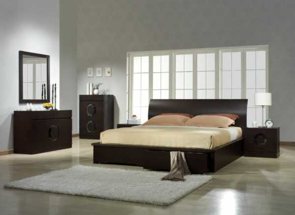 Однако не стоит забывать о том, что спальня в современном стиле просто не может быть нагружена слишком мощной и габаритной кроватью, поэтому резьбы, лепнины и других подобных элементов лучше избегать.