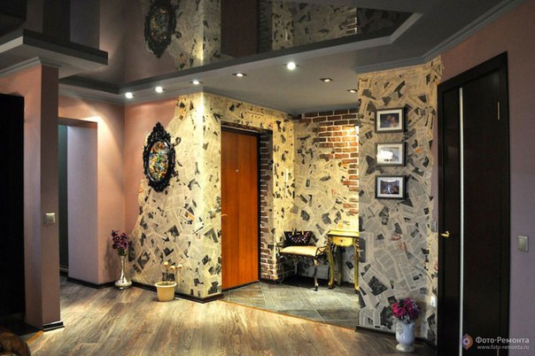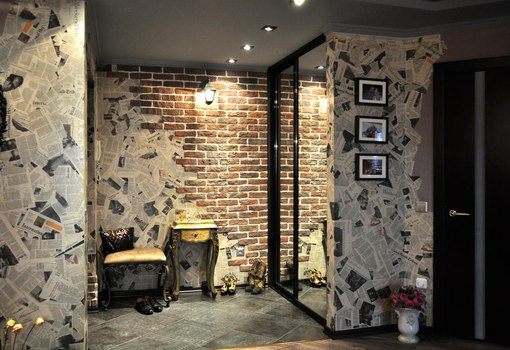 Классический способ отделки. Ассортимент обоев очень широк: можно выбрать подходящий вариант из самых разных расцветок и текстур. Обои достаточно просто наклеивать, стоимость их относительно невысока. При выборе нужно помнить, что для прихожей подойдут далеко не все виды обоев. Выбирать можно из этих разновидностей: