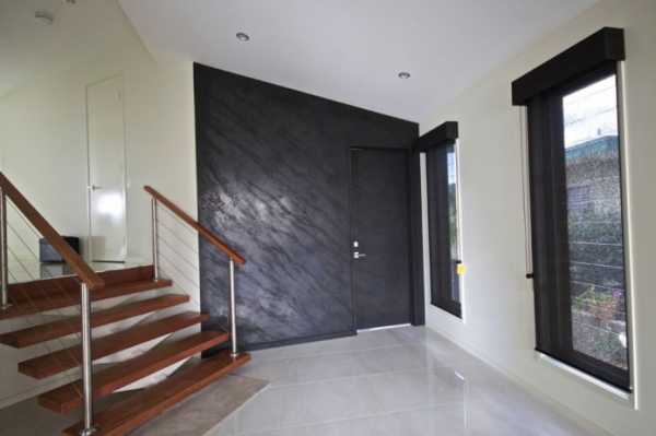 Все большую популярность набирает отделка декоративными штукатурками. В интерьере она смотрится весьма оригинально и может легко преобразить прихожую. Она устойчива к внешним воздействиям, поверхность ее достаточно прочная.