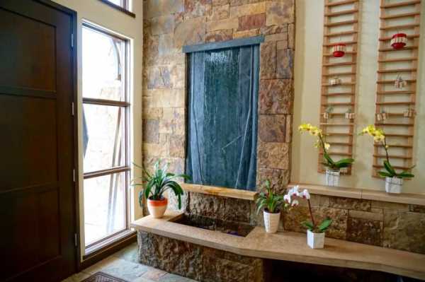 Сочетая камень с живыми цветами и деревом, вы подчеркнете свое внимание к природе. Лучше если такое оформление стен прихожей плавно перейдет в соответствующий дизайн на кухне или в гостинной.