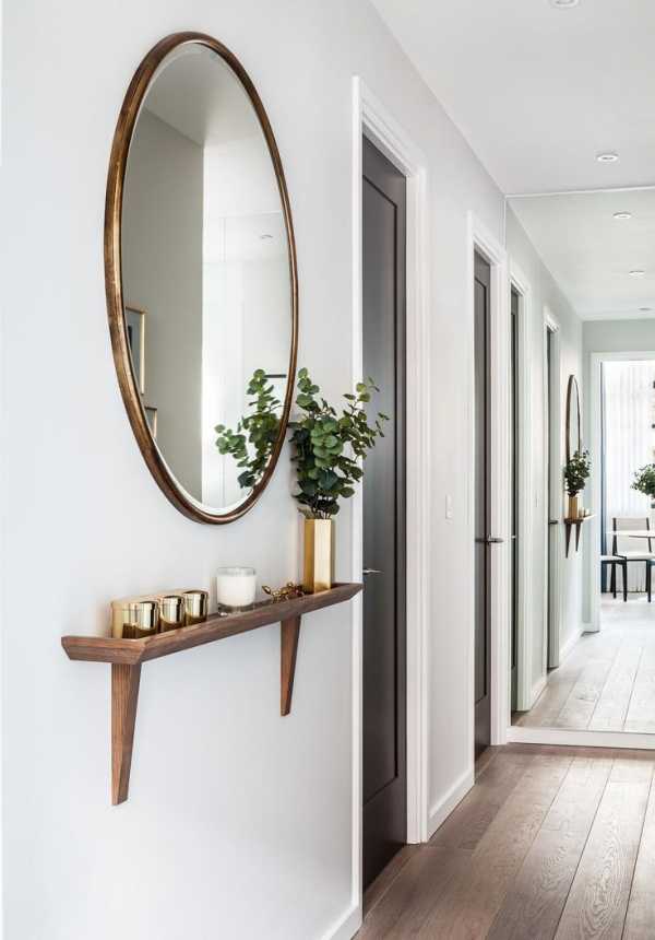 Добавочные элементы не должны сильно выступать от стены. В результате их установки в коридоре должно хватать пространства для свободного прохождения одного человека по нему. Самым подходящим добавочным элементом станет размещение небольших по размерам полочек, встроенных в стену.