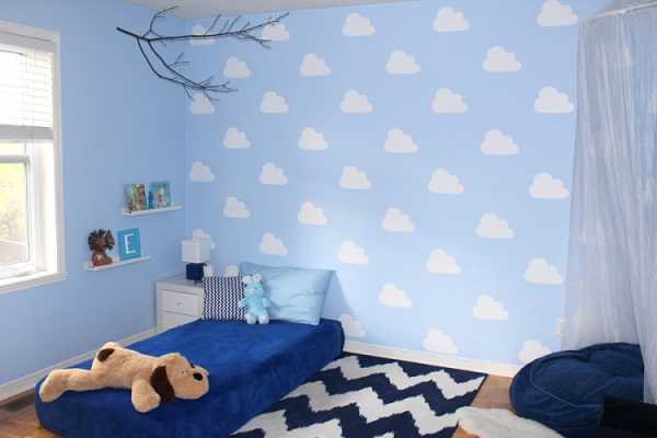 Гармоничное сочетание белого и голубого цвета в интерьере детской