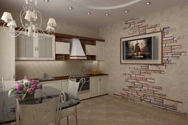 Декорирование стены гипсом в интерьере кухни в стиле лофт