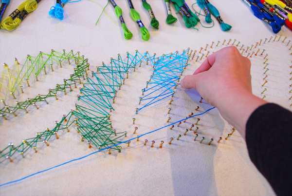Картины из гвоздей и ниток (это направление известно как string art) можно делать прямо на стене