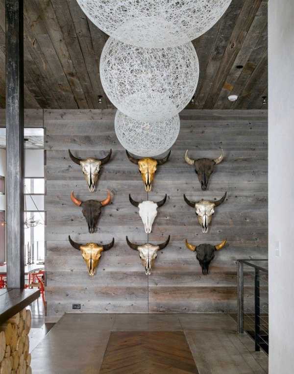 Гипсовые или настоящие головы крупных животных: смелый брутальный декор. Еще популярна вариация с ними же, раскрашенными узорами неоновых и кислотных цветов