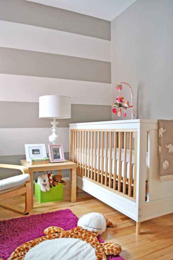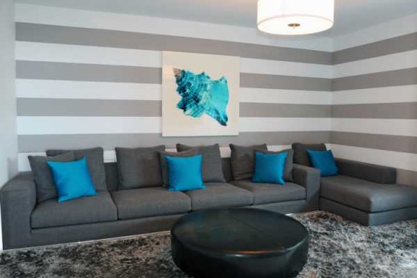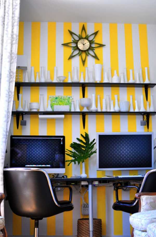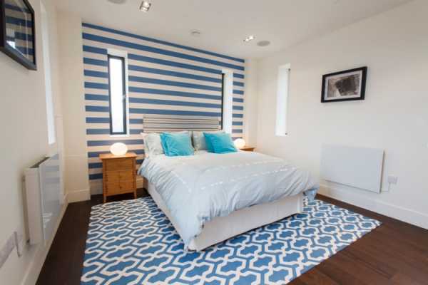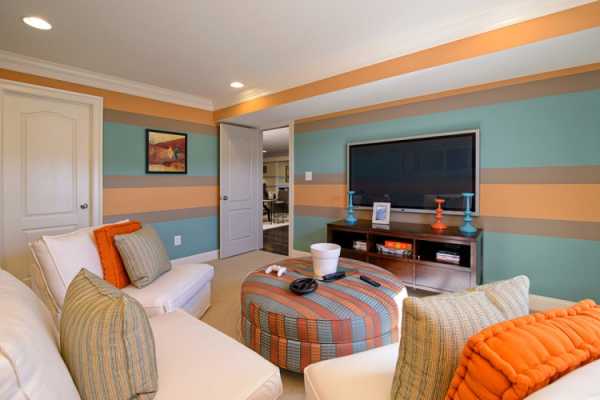 Горизонтальные полосы на стенах зрительно расширят помещение и подчеркнут общий стиль