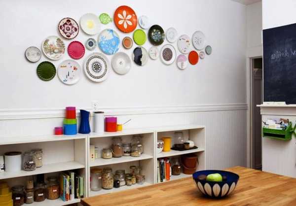Такой декор стен принесет в интерьер кухни определённую изюминку и сельский шарм. Расписные тарелки, привезенные из далёких стран или оставленные вам любимой бабушкой, будут очень оригинально смотреться на контрастном цвете стен на самом видном месте.
