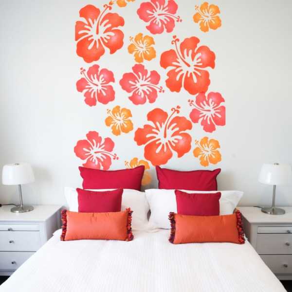 Экзотические цветы на стене – оригинальный декор спальной комнаты