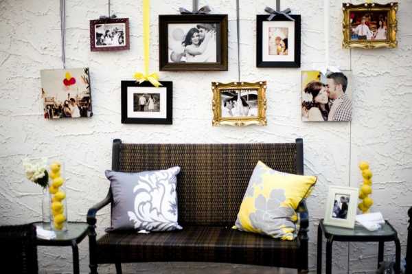 Альтернативная идея – это декорирование стен с помощью фотографий. Перед тем, как украсить стену фотографиями, необходимо грамотно продумать композицию. Наличие фотографий на стене привнесёт особый уют в интерьер комнаты и будет дарить тёплые воспоминания.