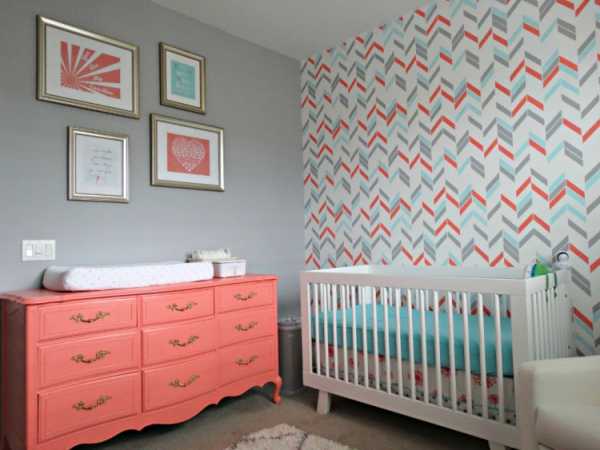 Треугольники являются современной тенденцией в искусстве. Выбирая такое оформление стены, используйте мягкие пастельные тона, ограничиваясь небольшим количеством цветов. Лучше всего геометрический узор использовать на одной стене. Из геометрических фигур можно создавать целые орнаменты. Просто подберите всего лишь два более ярких и насыщенных цвета и приступайте к покраске.