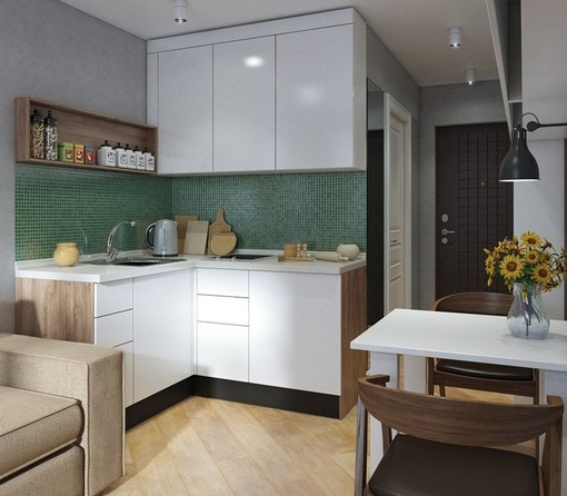 Казалось бы, на 19 квадратах невозможно совместить кухню и зону отдыха.