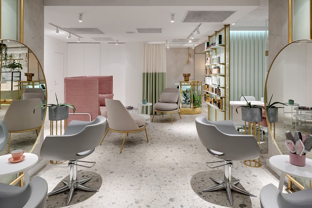 Свобода передвижений – это важное требования для пространства бьюти-центра. Уютная обстановка не сочетается с узкими проходами и огромного количества оборудования.