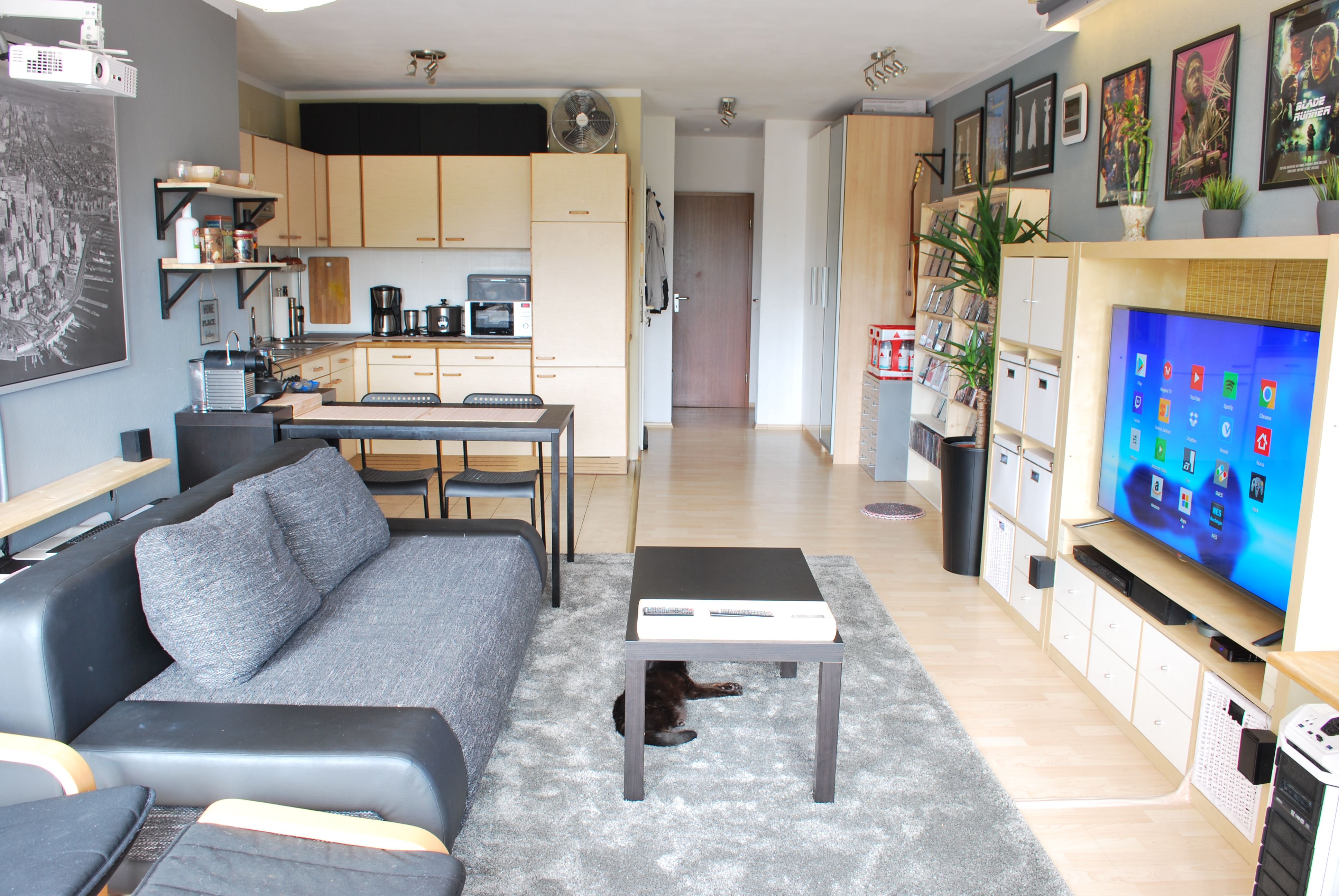 - Громоздкой мебели в однокомнатной квартире быть не должно, как и мебели темных оттенков. Вместо тяжелого дивана подойдет небольшой и удобный диван. Сэкономьте место не только по горизонтали, но и по вертикали, то есть максимально используйте свои стеллажи и антресоли.