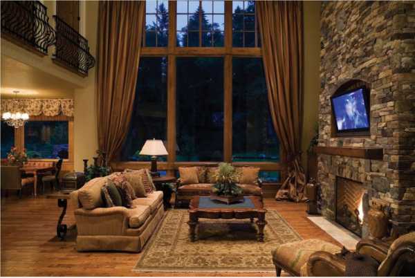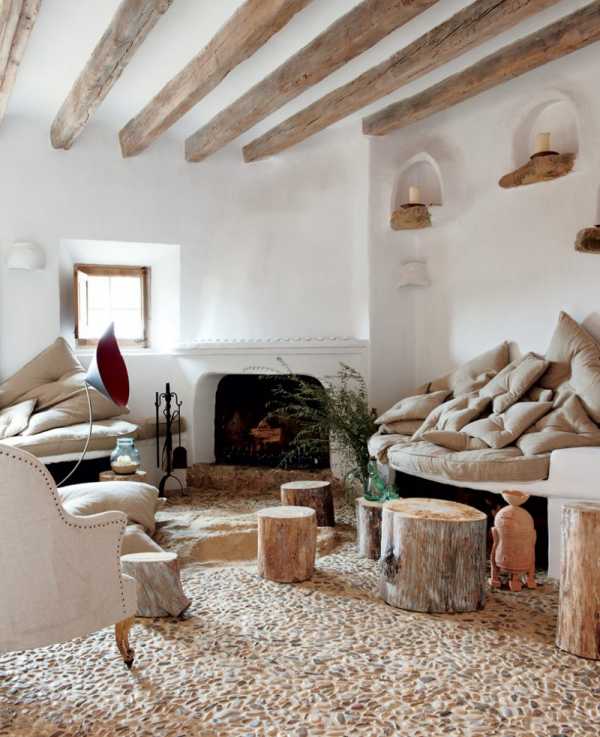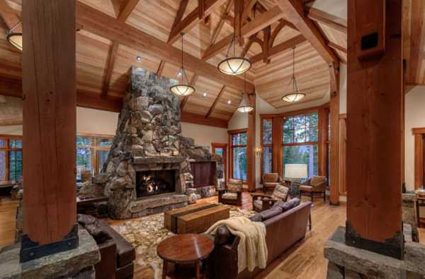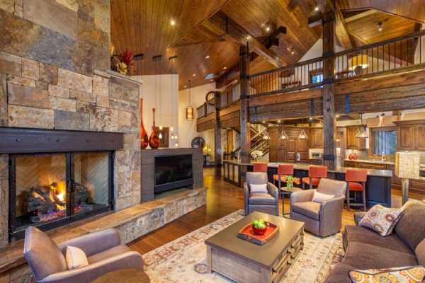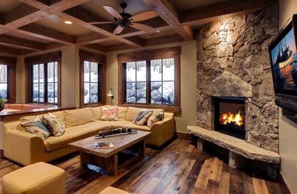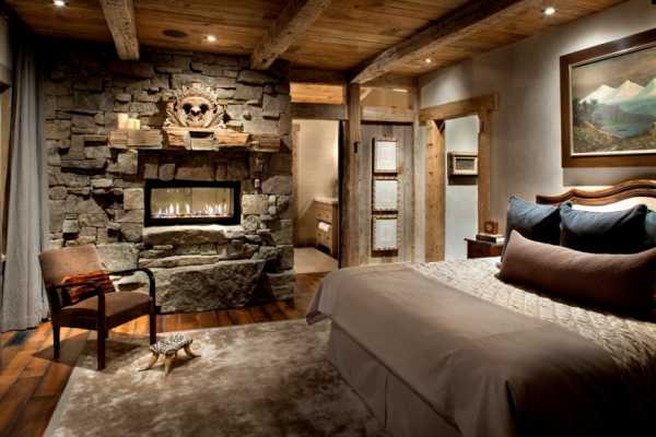 Дерево, камень, камин – основные элементы в деревенском стиле