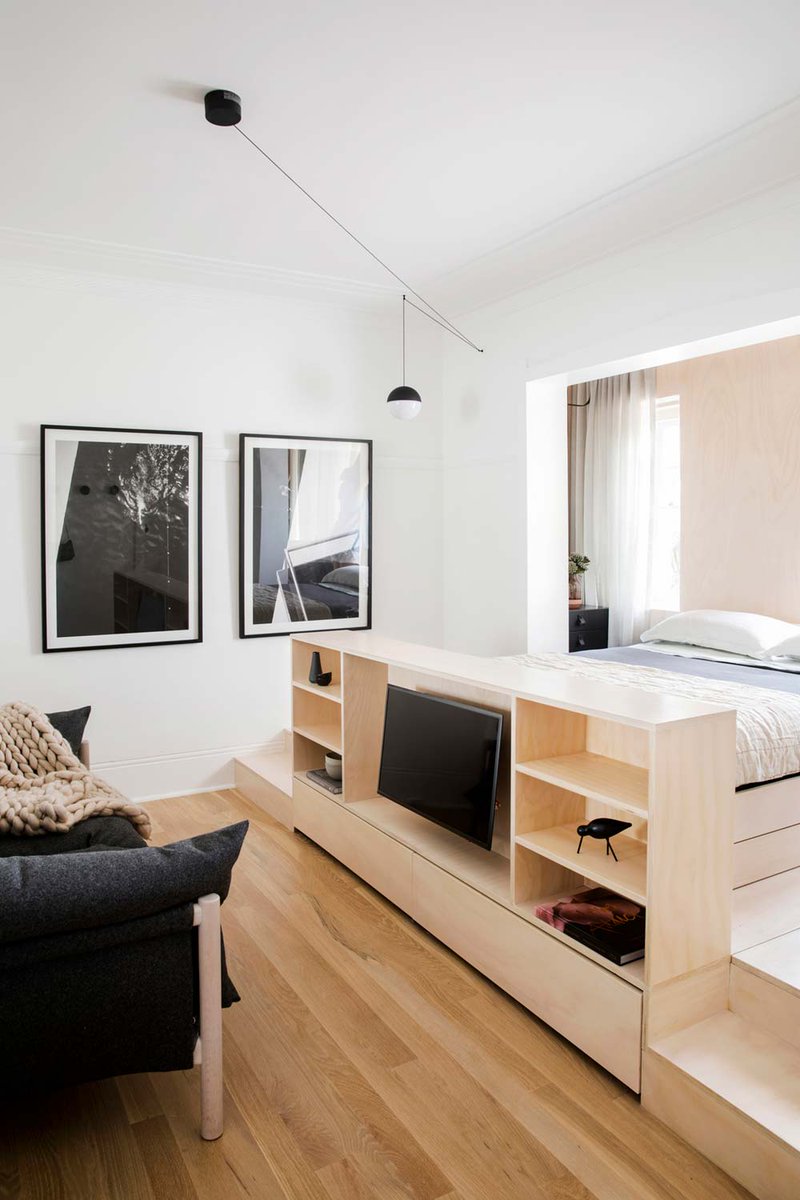 Это одна из моих любимых идей мебели для однокомнатной квартиры.