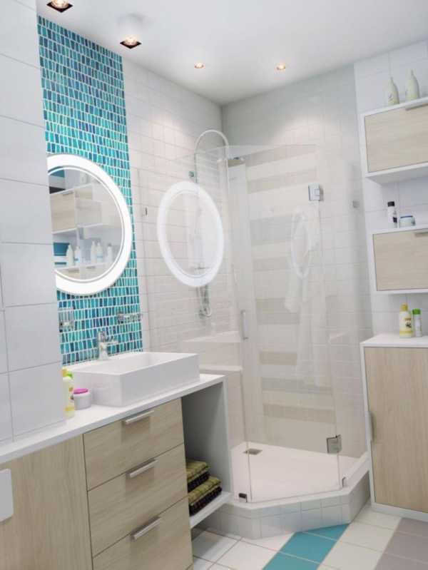 Учтите, что лежачая конструкция ванны уменьшает полезную площадь помещения. Душевая кабина — это хороший выбор и достойная альтернатива. Ее монтаж откроет перспективы для облицовки и внедрения в освободившееся пространство стеллажа и угловой раковины или подвесного унитаза, что тоже сэкономит площадь. Угловая ванна и маленький санузел — это правильное решение: эффектно, стильно и в духе модных тенденций.
