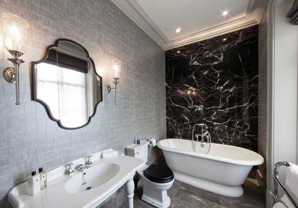 Если вам нравится мрамор или отделочные материалы под мрамор, то ваш стиль — арт-деко. Такая ванна предполагает внедрение в пространство комфортной сантехники, изысканной мебели, много эффектных источников освещения и стекла. Чтобы в маленьком санузле «освободить» место для нужных мелочей, ванну нужно обшить.