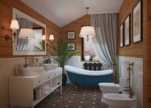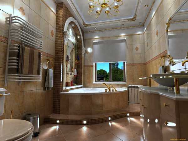 Чтобы сделать освещение в большой и просторной ванной комнате, светильники можно использовать любые, хоть точечные, хоть люстры с торшерами.