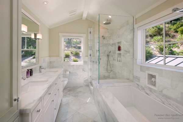Здесь уже труднее будет. Ведь важно организовать и красоту, удобство. Поэтому материалы/сантехнику следует выбирать очень тщательно.