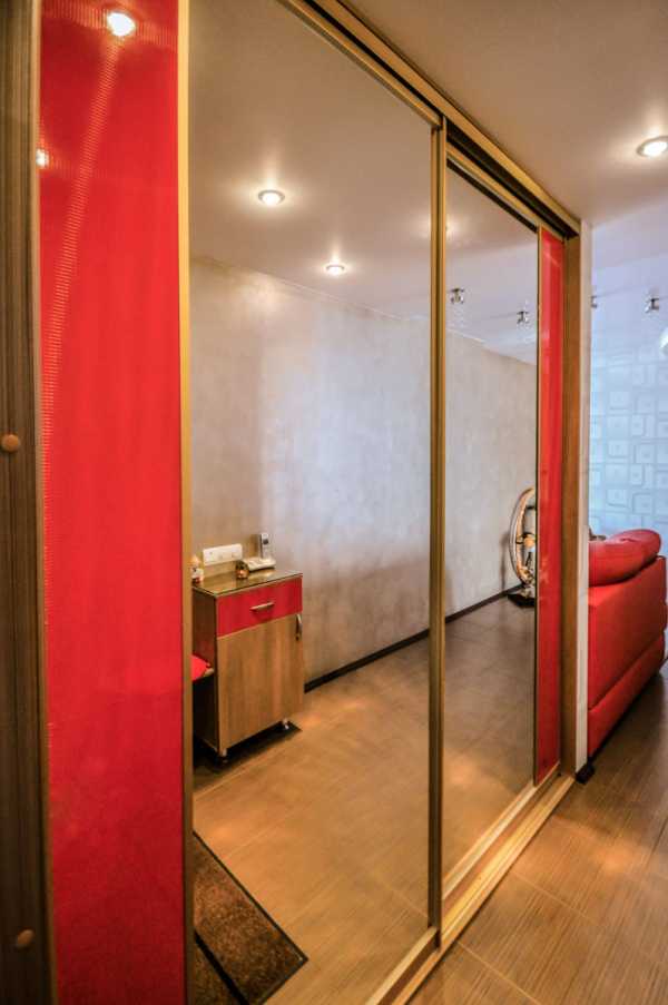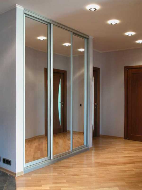 Зеркальные дверцы встроенного шкафа-купе визуально увеличивают пространство