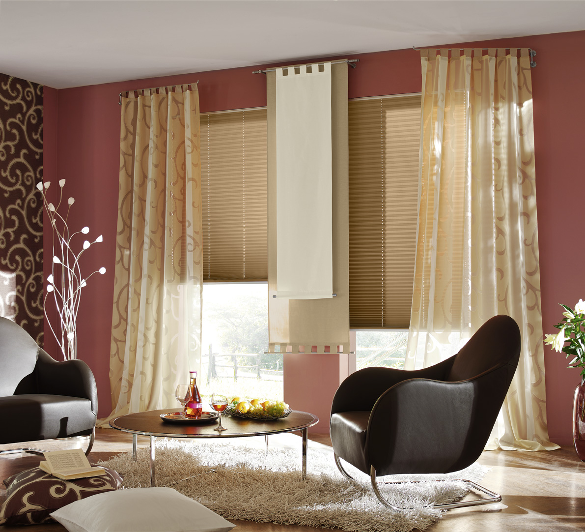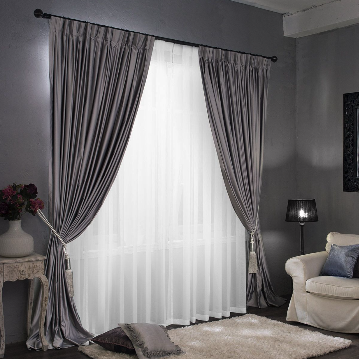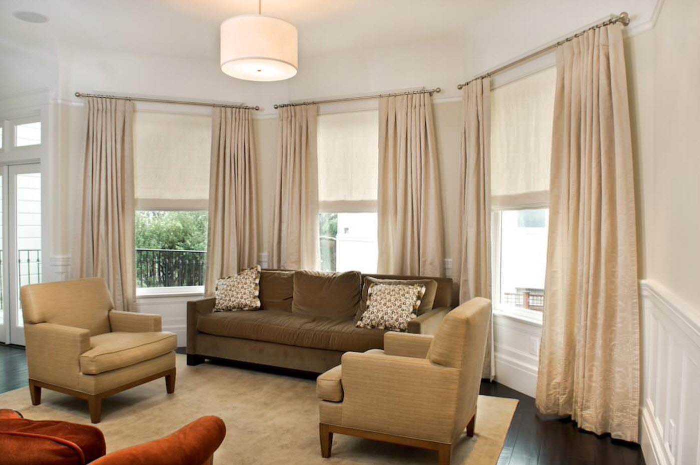 Этот вид занавесок идеально подходит для гостиных с большими оконными проемами, а механизм купе будет оригинальным дополнением.