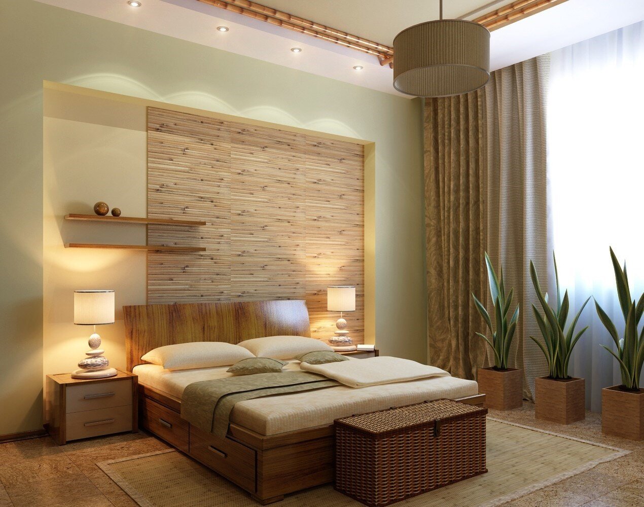 Эта тема – новинка 2017 года. Поэтому эко-стиль приветствуется. Это и деревянные кровати, и обшивка потолка, стен деревянными панелями, и деревянный пол, и множество комнатных цветов, и широкие окна с минимумом переплетов. Интерьер выдержан в естественных оттенках, добавлены простые, не вычурные декоративные элементы. Сон в такой комнате будет действительно здоровым.
