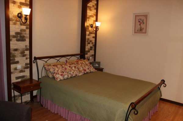 - широкая кровать, прикроватные тумбочки, торшеры, платяной шкаф;