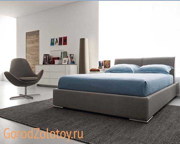 - Удобный вариант — кровать без ножек, она зрительно делает комнату чуть выше.