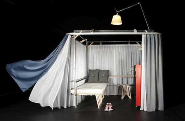 Идеальным вариантом экономии площади является изобретение Антонио Скарпони и Роберто Де Лука. Они представили свою нестандартную разработку переносной «комнаты». На ее четырех квадратах помещается вся необходимая мебель.