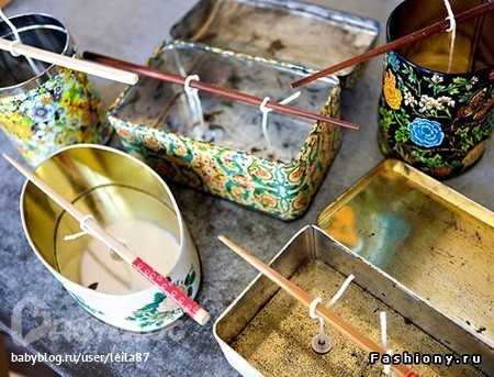 Начнем с простого. Наверно, все мы теоретически представляем как сделать свечку. Но как сделать свечку с красивым подсвечником из простых вещей? Может в вашем доме завалялись парочка красивых баночек из под печенья или экзотического чая, все это можно использовать для дела. Сделать уникальные свечи как для декора, так и для сувениров или подарков близким.