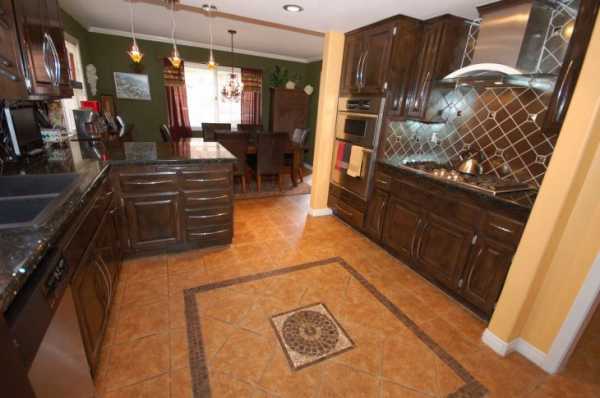 Красивый пол в кухню — кафель. Очень популярный вид покрытия для пола, применяемый на кухне. Кафель не боится высокой температуры, пара и влаги, легко чистится, стоит не дорого. Производители кафеля предлагают покупателям много разнообразных и интересных расцветок.