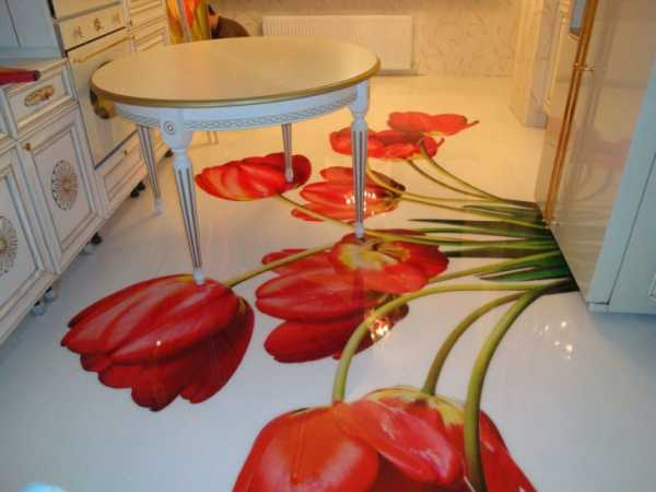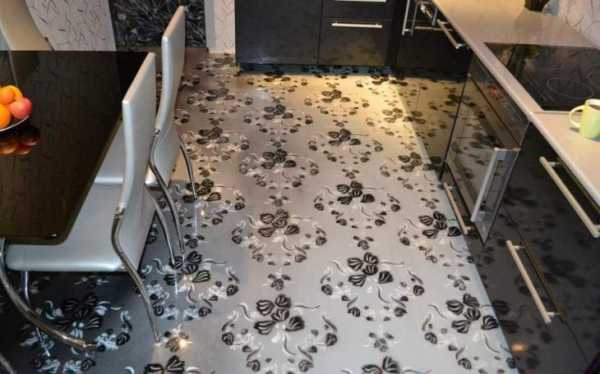 Самый основной плюс выбора этого вида пола — абсолютно безграничные возможности цветовой гаммы, что помогает реализовать любой дизайн пола в кухне.