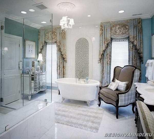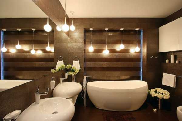 Люстра может стать предметом оформления ванны только в помещениях с большой площадью.