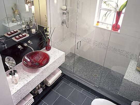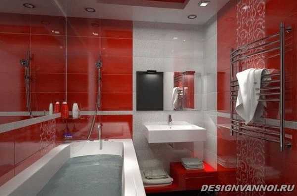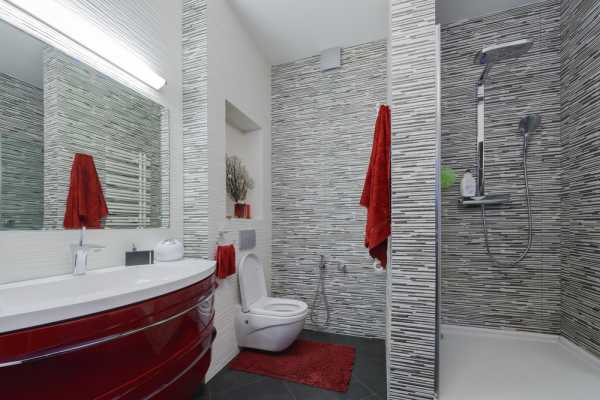 Интересно будет смотреться отделка красным стены над ванной или раковиной. Красная плитка удачно смотрится на полу и создает так называемую композиционную базу, словно насыщая владельцев квартиры энергией изнутри.