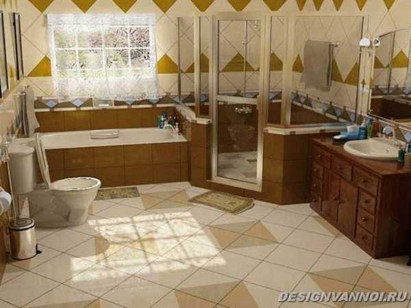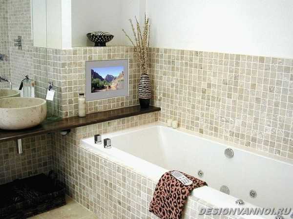 Наилучший вариант дизайна – плитка небольшого размера. Крупноформатная зрительно сразу же сделает комнату совсем маленькой, и может даже нарушить пропорции. Часть стен можно выложить мозаикой.