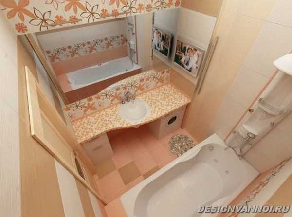 Кроме того, в дизайне ванной маленького размера можно использовать и другие «маленькие хитрости», например, установить умывальник на длинной столешнице, часть которой будет заходить на пространство над ванной. В этом случае столешница может использоваться для хранения шампуней, кондиционеров, гелей для душа и других необходимых при купании вещей.