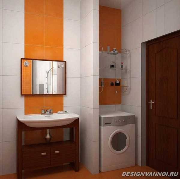 Стиральную машину лучше разместить под раковиной, задействовав пустую площадь с пользой.