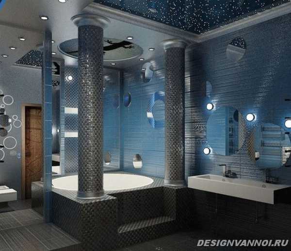 - Используйте глянцевые поверхности в дизайне ванной – они создают игру отражений, чем усложняют интерьер и добавляют в него света. Например, уместен будет натяжной глянцевый потолок.