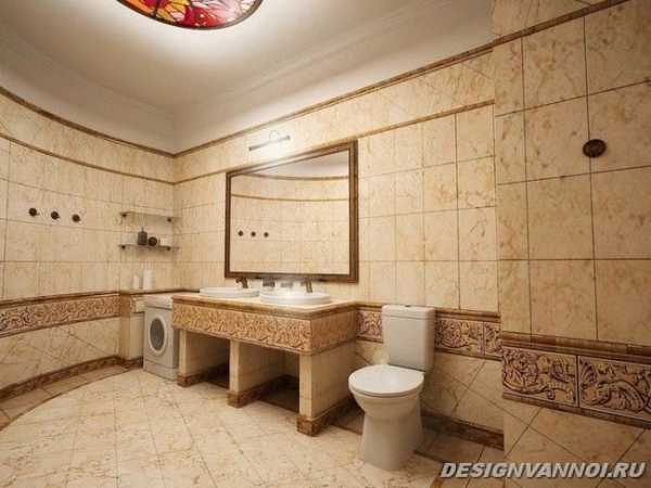 Для классического стиля часто выбирают природные оттенки. Нередко в таких ванных можно встретить применение кафеля под натуральный камень. Сделать интерьер более современным можно за счет авторской сантехники и стеклянных элементов дизайна.