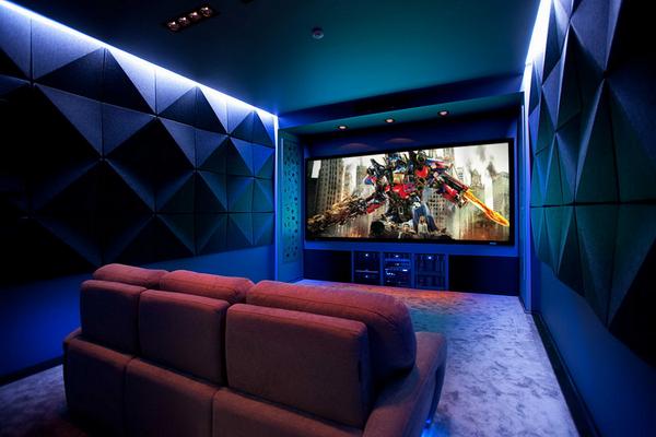Отдельная комната позволяет добиться максимальной звукоизоляции: сюда не проникают шумы извне, а звуки фильма не мешают остальным домочадцам. Потолок и стены отделывают акустическими панелями, которые гасят звук и не дают ему выйти за пределы комнаты.