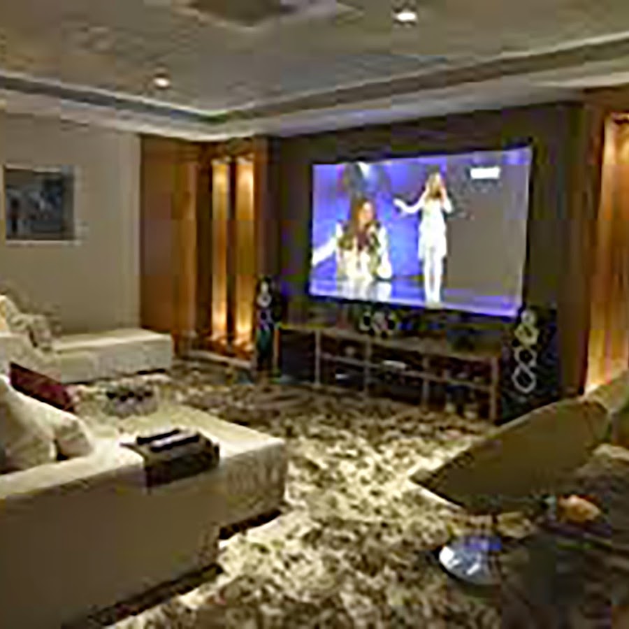 Телевизионный монитор здесь использует систему Kaleidoscope, которая представляет собой решение для кино и музыки, которое вы можете использовать в своем кинотеатре. Обратите внимание, что в этом кинотеатре есть приподнятая часть со ступенями по бокам.