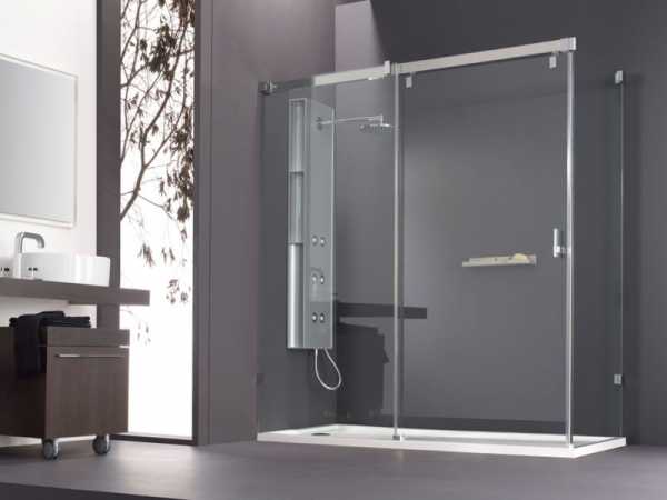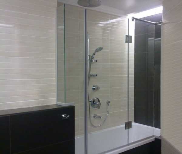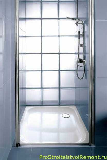 Пространство, как правило, огораживается панелями из матового или прозрачного стекла. Стекло используется особенное, на котором не видно мыльных разводов и следов от высохших капель.