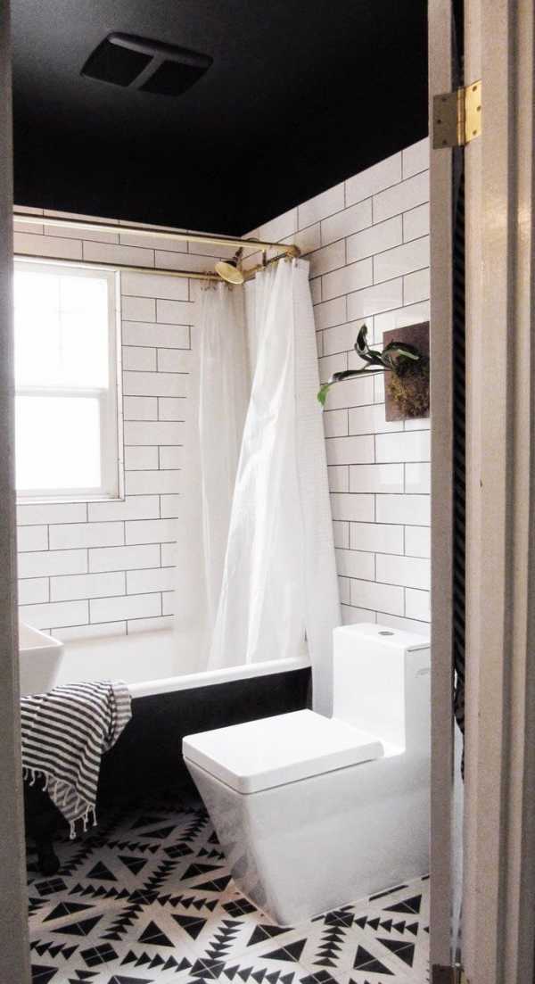 Если хочется создать лаконичный дизайн, то следует использовать плитку. Так можно сделать полностью черное помещение, где белыми будут только предметы сантехники, полотенца и другие детали.