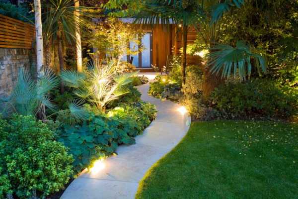 Подсветка необходима на любом участке, с ней безопасней, к тому же с ее помощью можно эффектно подчеркнуть все выигрышные элементы дизайна в темное время суток. Это могут быть высокие фонари, установленные вдоль дорожек, или настенные светильники на веранде, летней кухне или беседке. Очень эффектно смотрятся светильники, установленные прямо в почву, они создают неповторимую, загадочную нижнюю подсветку. Такие светильники могут быть частью садовой скульптуры.