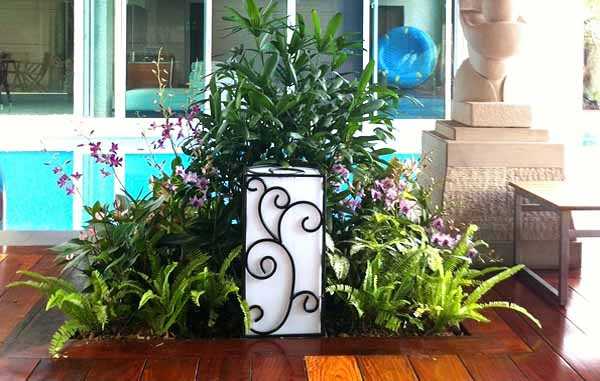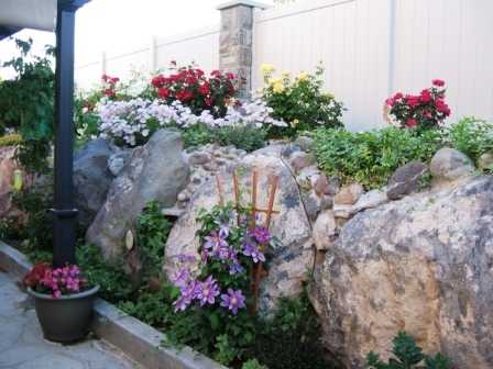 - Оформление цветников, клумб. Цветы следует подбирать исходя из особенностей участка, почвы, климата. Обязательно комбинируйте многолетние растения и однолетники. На небольших площадях используйте вертикальную посадку (от меньшей высоты растений к большей), высаживая цветы около стен здания или изгороди. В эту же категорию можно отнести проектирование альпийских горок. На большом участке можно установить стеклянную оранжерею.